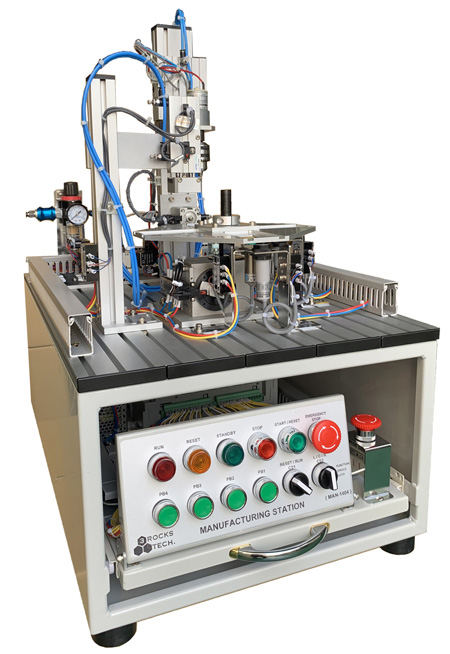 Manufacturing Station MAN-1404 is a member of our Flexible Mechatronics Family. All mechanism modules in the system can be adjusted in X, Y, or Z axes to make an easy transition from one module to another module. The modules in the system can be combined with the other modules in the Flexible Mechanism family to create different process systems.